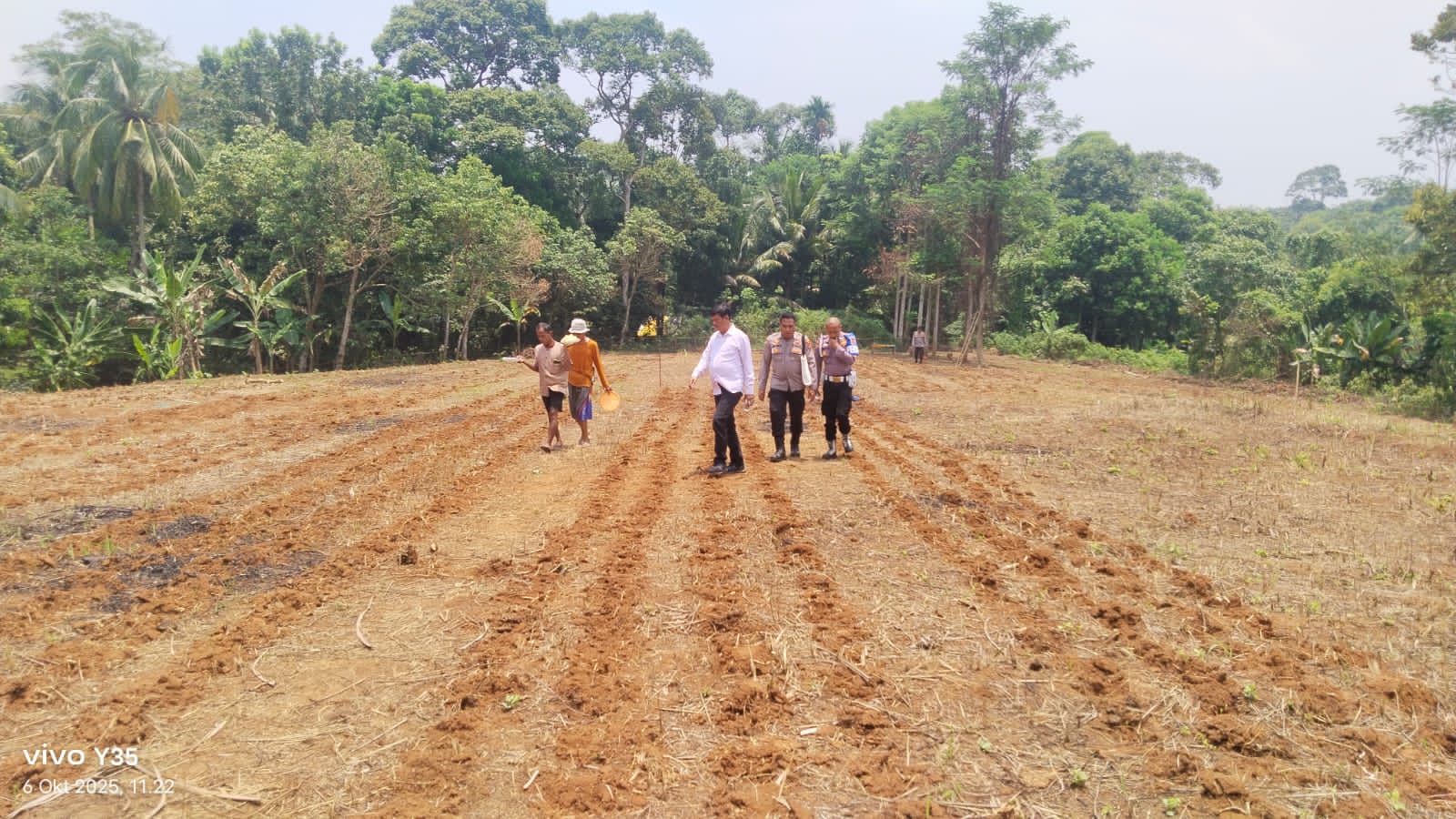 Penanaman Jagung serentak Kuartal IV Seluruh Indonesia di lahan milik kelompok tani Bpk. Maman Rt. 01/01 Kp. Macute Kel. Angsana Kec. Mancak-Serang daerah hukum Polres Cilegon.