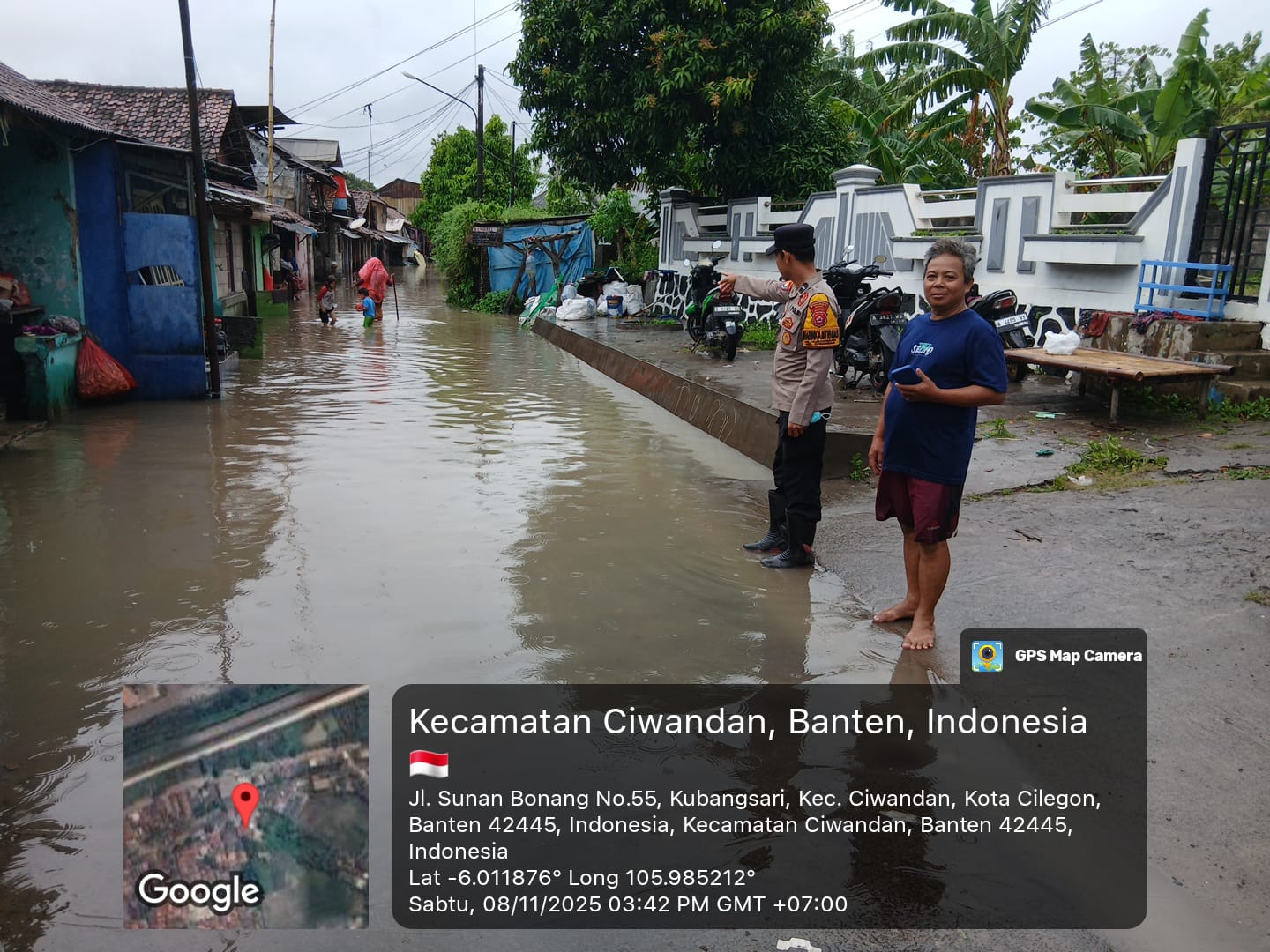 Kapolres Cilegon Polda Banten AKBP Dr. Martua Raja Taripar Laut Silitonga Melalui Kapolsek Ciwandan Polres Cilegon KOMPOL Andi Suherman Mengatakan bahwa Personil Bhabinkamtibmas Kelurahan Kubangsari Polsek Ciwandan Polres Cilegon AIPDA Asep Karyudin melakukan monitoring rumah warga paska hujan yang menyebabkan rumah warga tergenang air di lingkungan Cigading pasar sekitar 63 rumah.