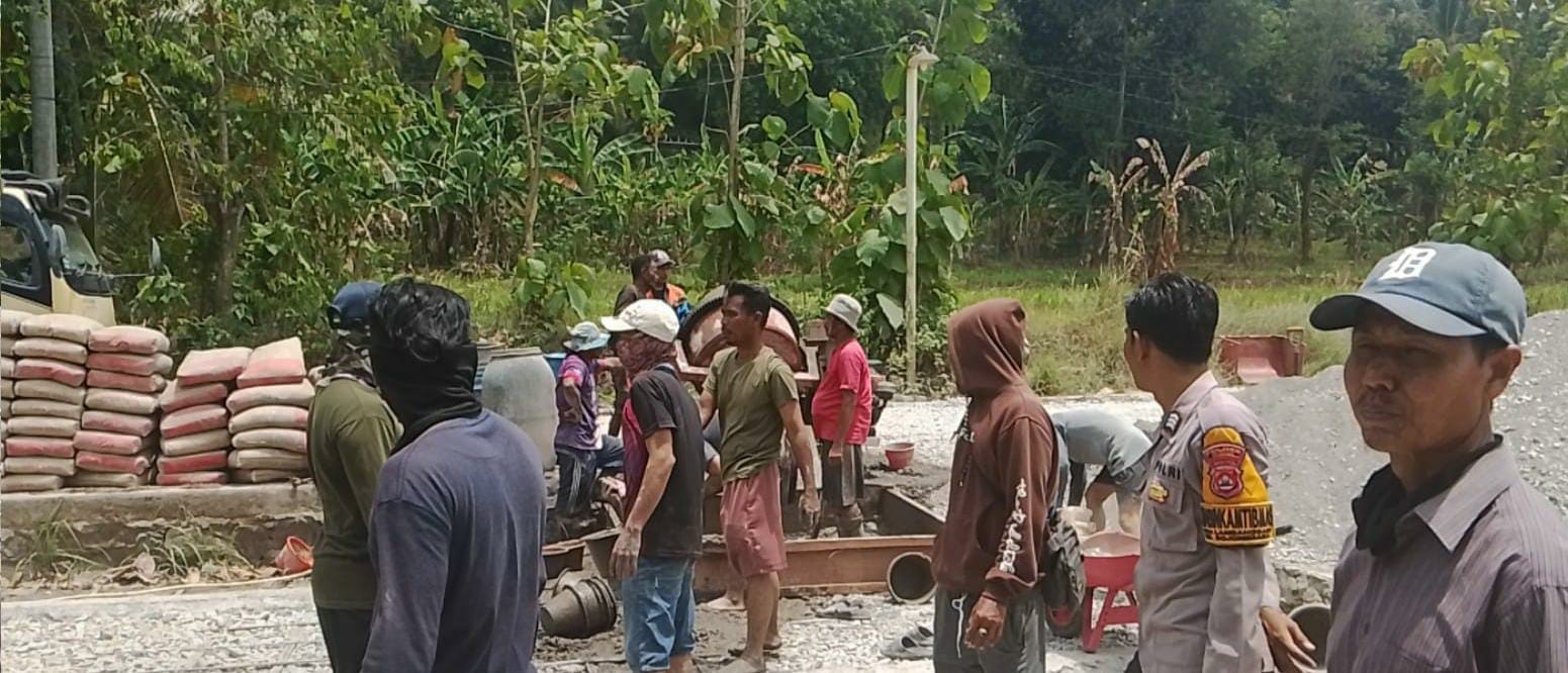 Personal Bhabinkamtibmas Hampiri Warga Gotong royong Berikan Pesan Kamtibmas
