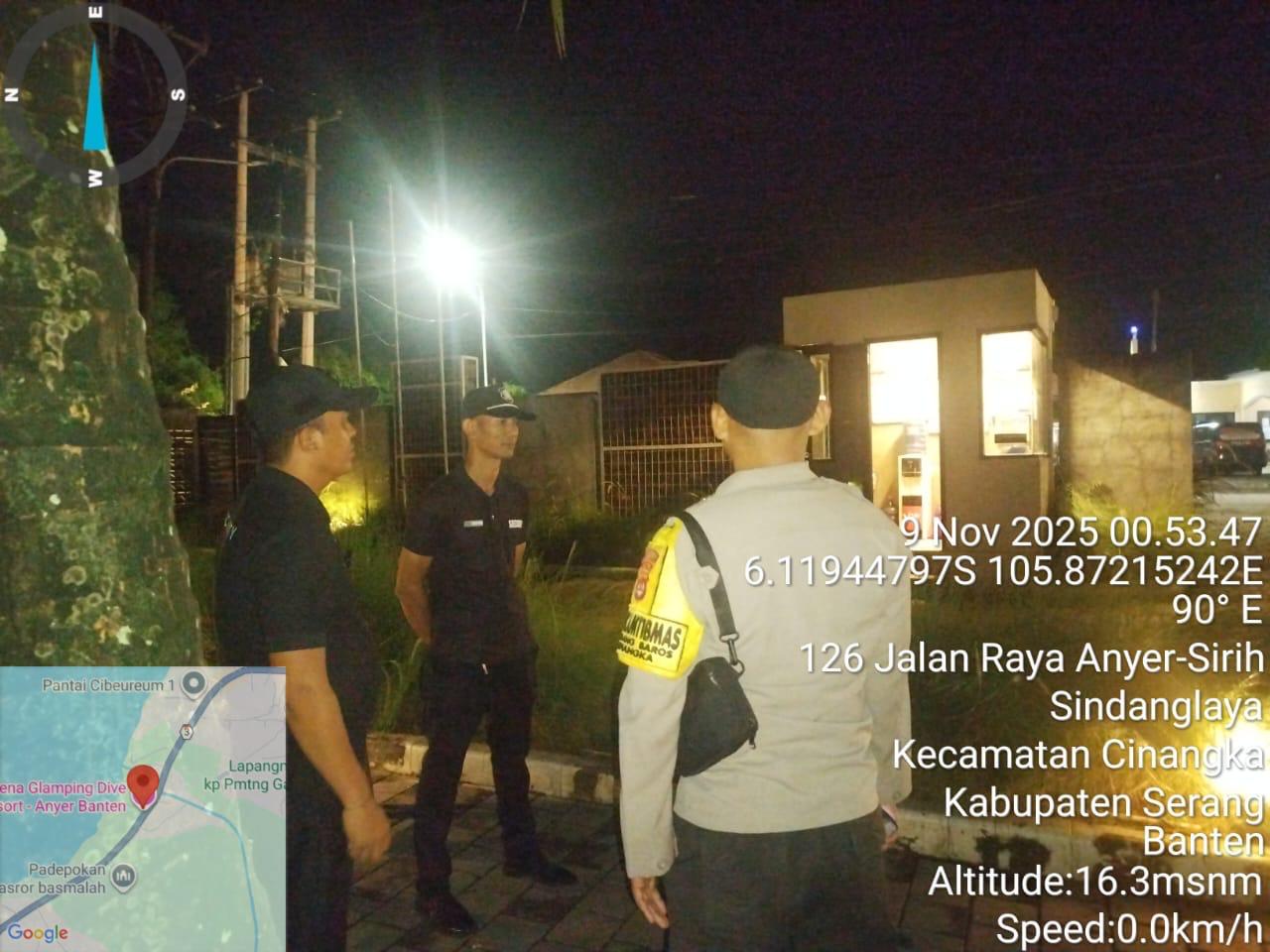 *Cilegon* – Dalam Rangka Pencegahan Kejahatan Jalanan dan Memelihara situasi keamanan dan menjaga serta memberikan rasa aman dan nyaman di masyarakat,Salah satu upaya untuk mewujudkan hal tersebut sebagaimana yang dilakukan oleh Personil Polsek Cinangka Polres Cilegon Polda Banten melaksanakan giat patroli blue light malam hari hingga menjelang pagi, Minggu (09/11/2025).
