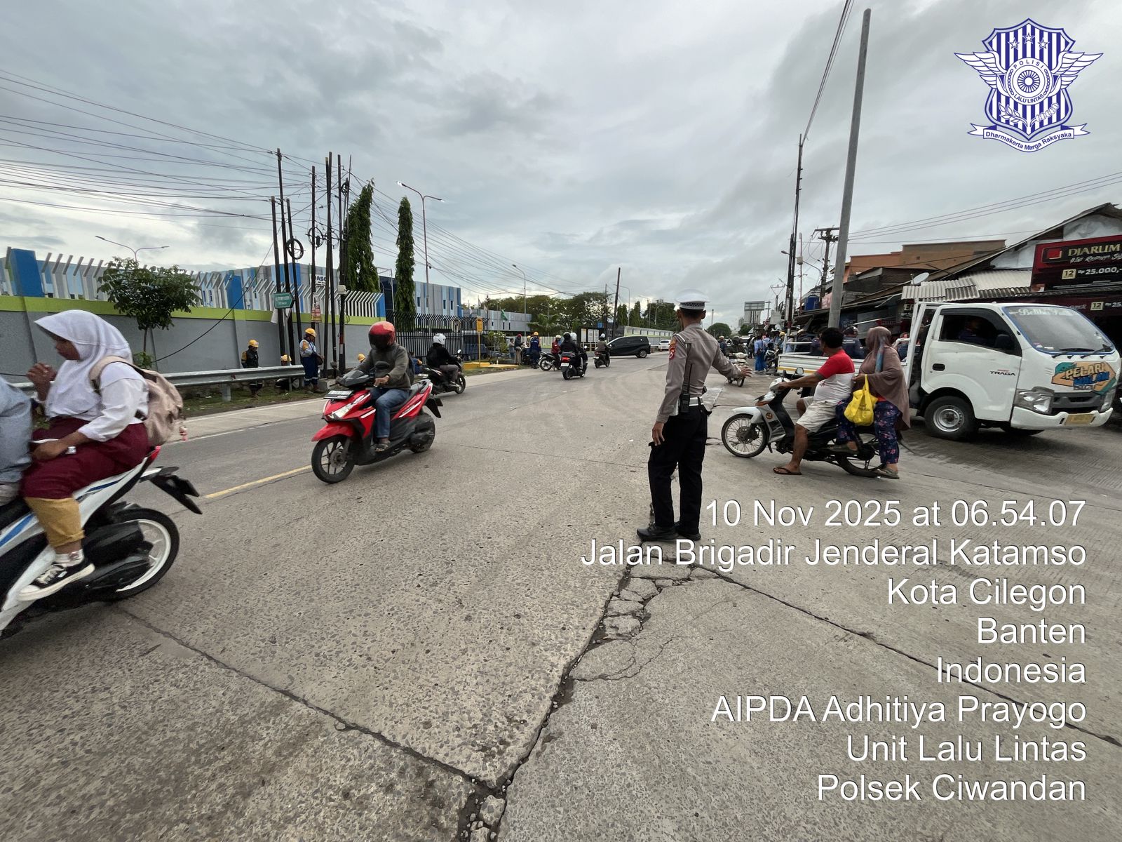 Cilegon - Tingginya mobilitas masyarakat pada jam-jam sibuk, tingkat kerawanan baik itu kemacetan ataupun kecelakaan pasti ada potensi, sehingga untuk mengantisipasi hal tersebut Personil Polsek Ciwandan Polres Cilegon Polda Banten Bhabinkamtibmas melaksanakan Strong Point pada sejumlah lokasi, Kamis (10/11/2025).