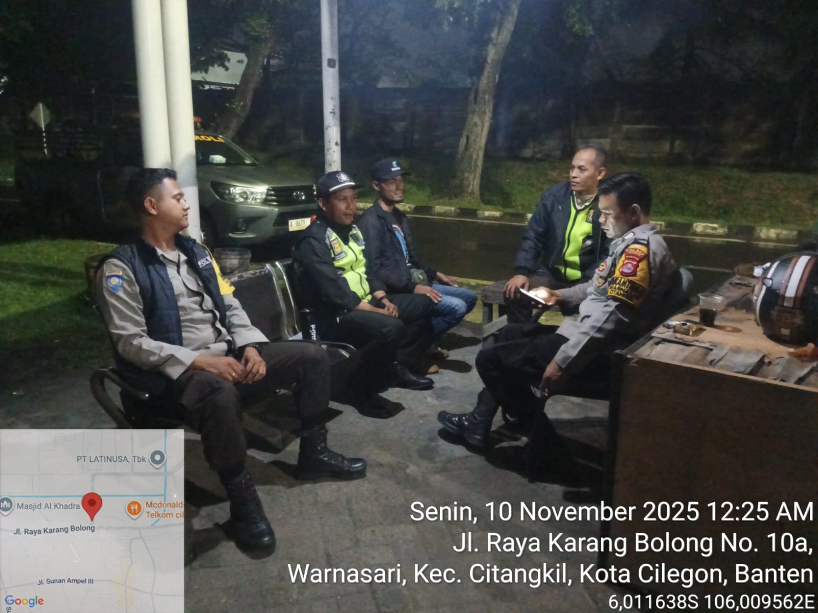 Cilegon - Upaya mengantisipasi aksi kejahatan pada daerah binaan dan memberikan rasa aman dan nyaman kepada warga binaan, Bhabinkamtibmas Polsek Ciwandan Polres Cilegon Polda Banten sambangi warga pada malam hari, Swnin (10/11/2025).