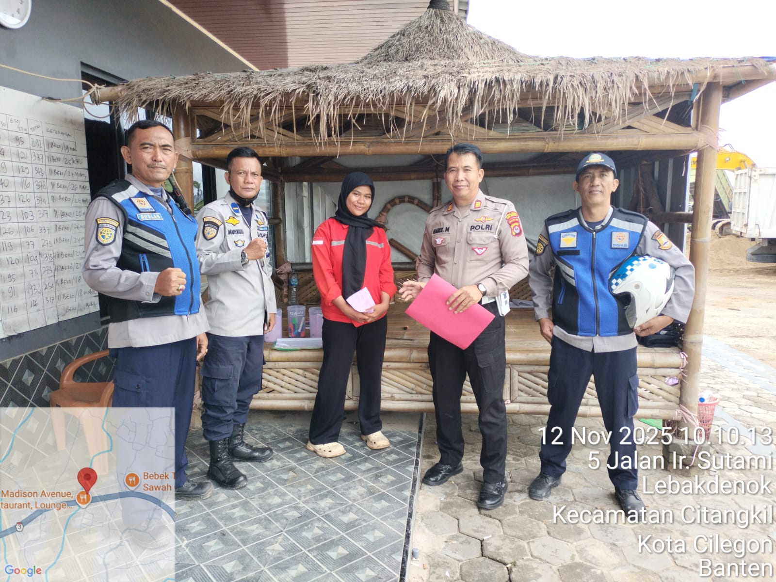 Cilegon - Kanit Lantas Polsek Ciwandan AKP Haris Munandar melaksanakan Himbauan SK Gubernur Dan monitoring stokfile pasir Didaerah hukum Polsek Ciwandan, Rabu (12/11/2025).