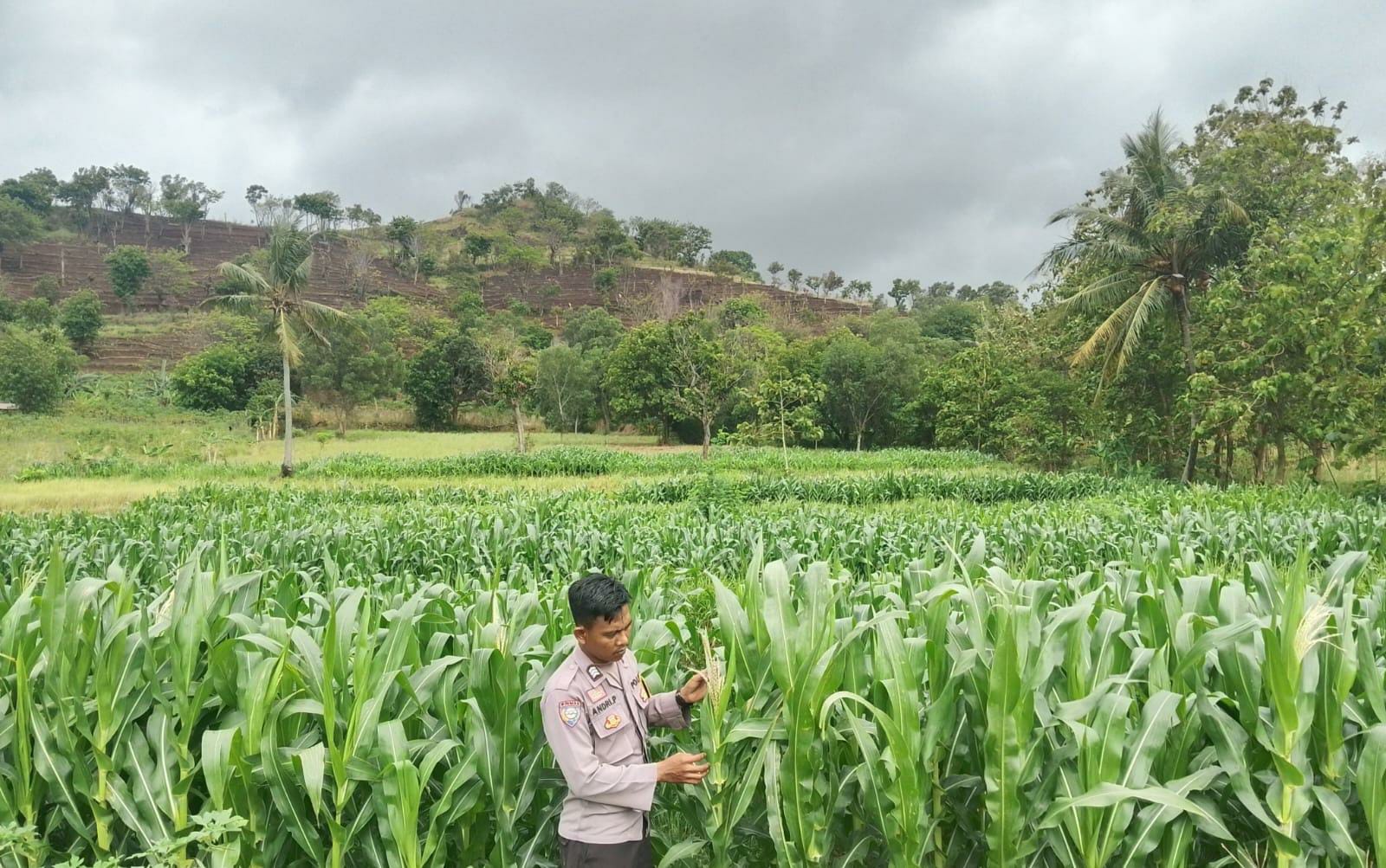 Anggota Bhabinkamtibmas Polsek Bojonegara Bersama Petani Monitoring Pertumbuhan Tanaman Jagung Hibrida
