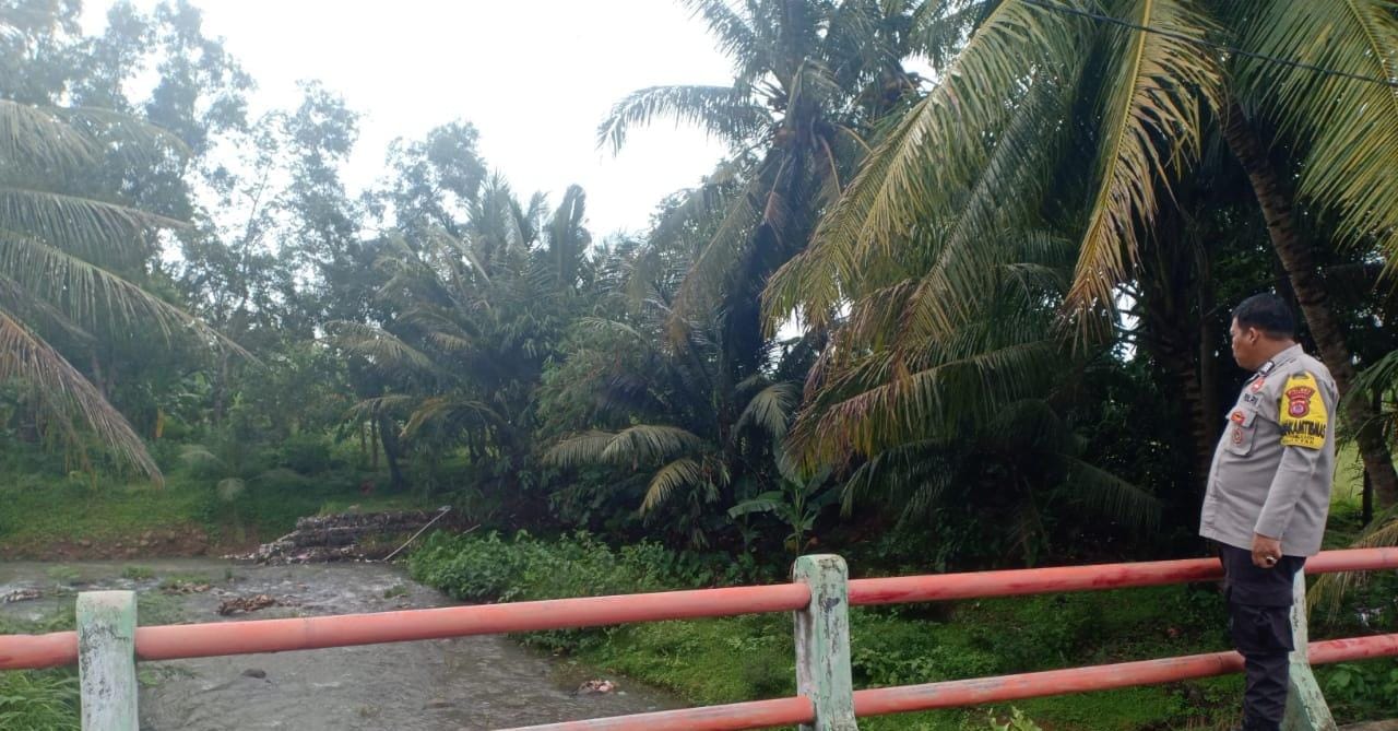 Personel Polsek Anyar Polres Cilegon Polda Banten melaksanakan Patroli kewilayahan mengecek debit air di Sungai pasca Hujan antisipasi banjir di wilayah Kec. Anyar, Kamis (13/11).