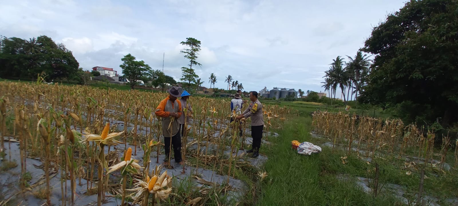 Cilegon - Polsek Ciwandan Polres Cilegon Polda Banten mendukung kegiatan panen jagung Hibrida hasil penanaman Poktan Blumbang Tani di Kelurahan Tegal Ratu, Kecamatan Ciwandan, Kota Cilegon, Kamis (13/11/2025)