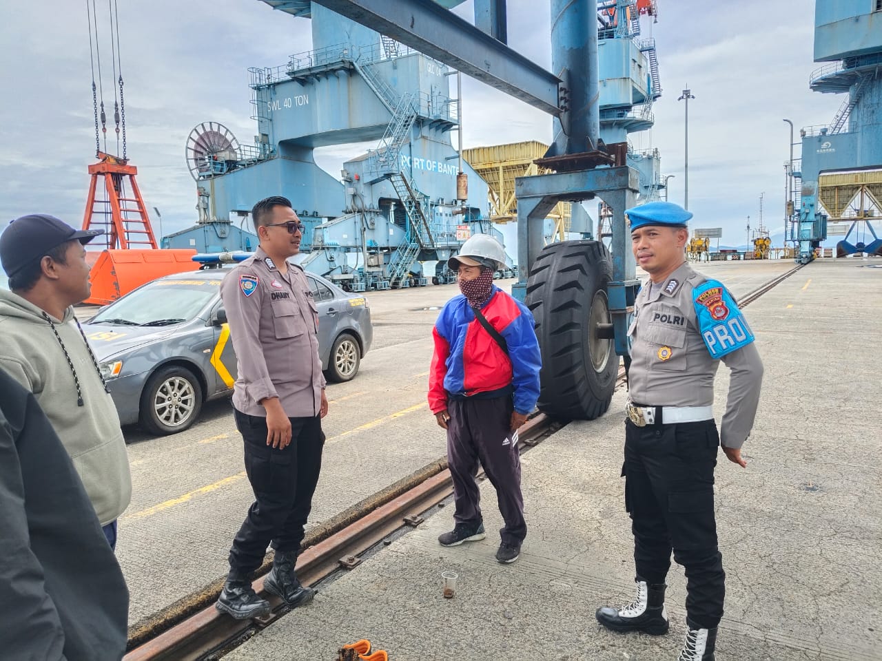 Jalin Silaturahmi, Bhabinkamtibmas Pelabuhan Polsek Kawasan Pelabuhan Banten berbincang ke Buruh Pelabuhan
