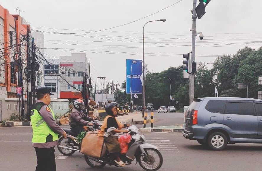 Cilegon - Pelayanan Kepada Warga Masyarakat dan Guna menciptakan situasi lalu lintas yang aman, tertib dan lancar, Personel Polsek Cibeber Polres Cilegon Polda Banten secara rutin melaksanakan pengaturan lalu lintas di sekitar Traffic Light PCI kota Cilegon.