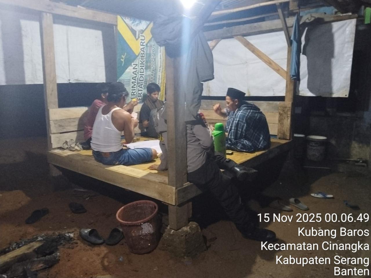 *Polres Cilegon* || Personel Bhabinkamtibmas Polsek Cinangka melaksanakan Program Komandan Wish Kapolda Banten RONDA SATKAMLING menyampaikan komunikasi dengan Petugas Siskamling agar berperan aktif dalam menciptakan Harkamtibmas yang aman dan Kondusif, Minggu (16/11/2025).