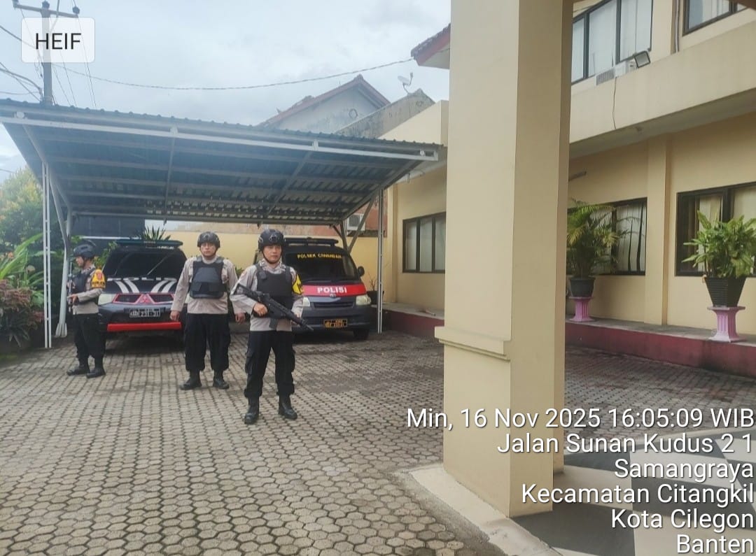 Cilegon - Guna mengantisipasi adanya potensi ancaman dan gangguan terhadap keamanan kantor maupun keselamatan personel piket jaga, Personil Polsek Ciwandan Polres Cilegon Polda Banten selalu tingkatkan kesiapsiagaan dan kewaspadaan dengan rutin menggelar kegiatan Sistem Pengamanan Mako (Sispam Mako), Minggu (16/11/2025).