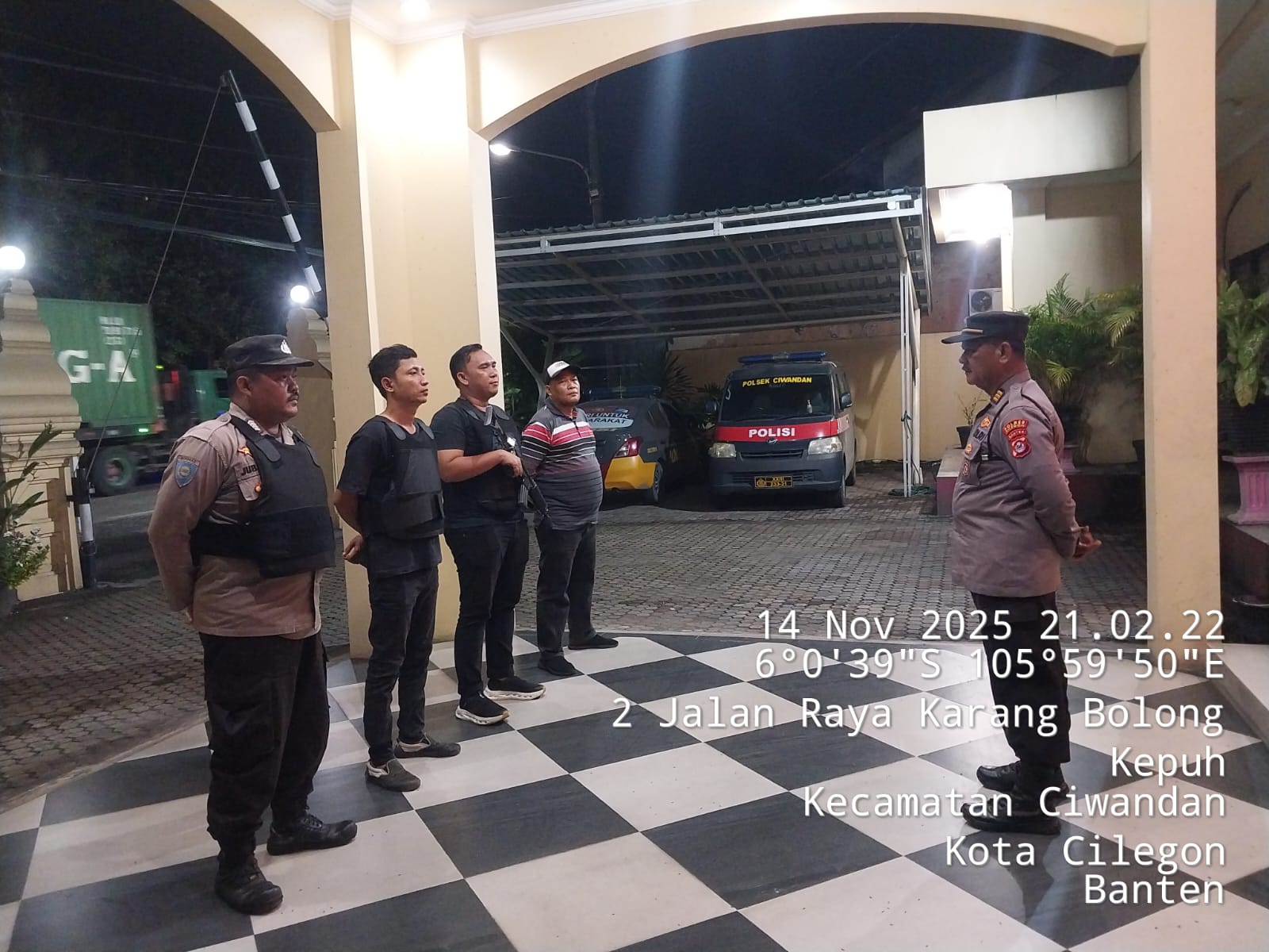 Cilegon - Personil Polsek Ciwandan Polres Cilegon Polda Banten menggelar apel malam Persiapan Patroli yang dipimpin Oleh Pawas Kanit Samapta Polsek Ciwandan AKP Sarpan, Minggu (16/11/2025).