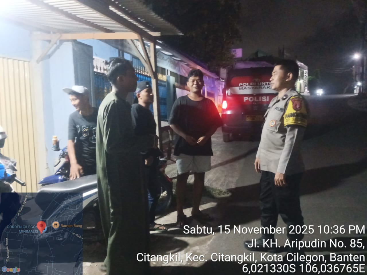 Personel Polsek Ciwandan Polres Cileon Patroli Malam Rutin Dalam Pencegahan Segala Bentuk Aksi Kriminalitas.