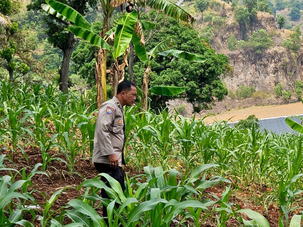 Tak kenal lelah, bhabin Lebakgede dan poktan Kepindis rawat lahan jagung