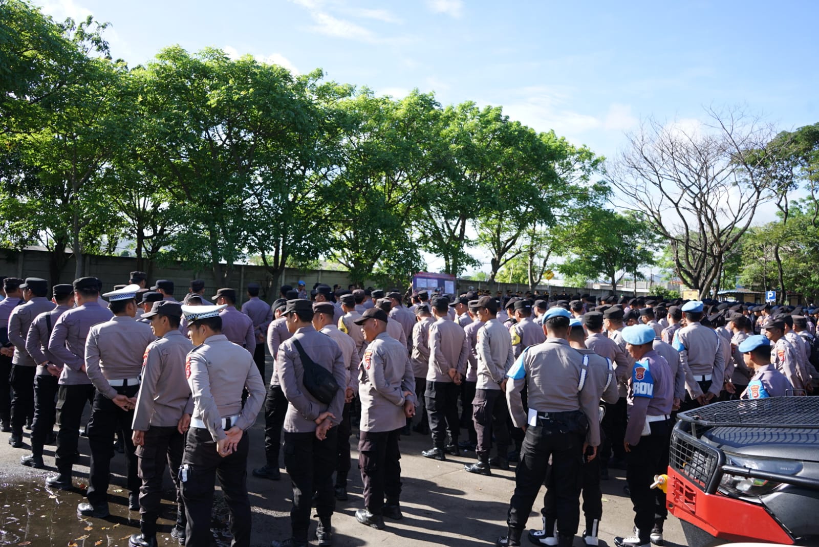 Aksi unjuk rasa berlangsung dalam pengawasan penuh aparat kepolisian hingga seluruh rangkaian kegiatan dinyatakan selesai dengan aman dan kondusif.