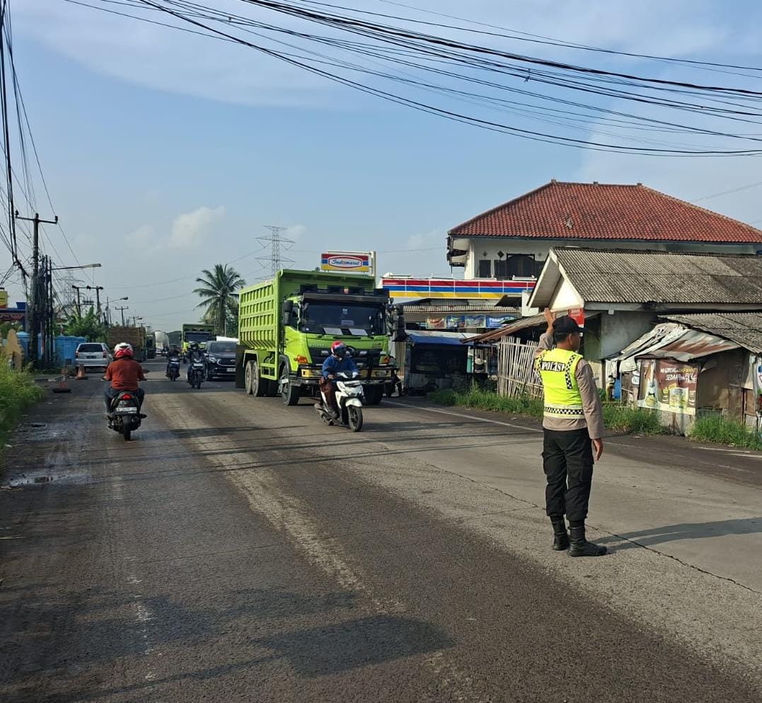 Bripka Susilo Polsek Bojonegara Laksanakan Gatur Lalin Di Pertigaan Wadas Bojonegara