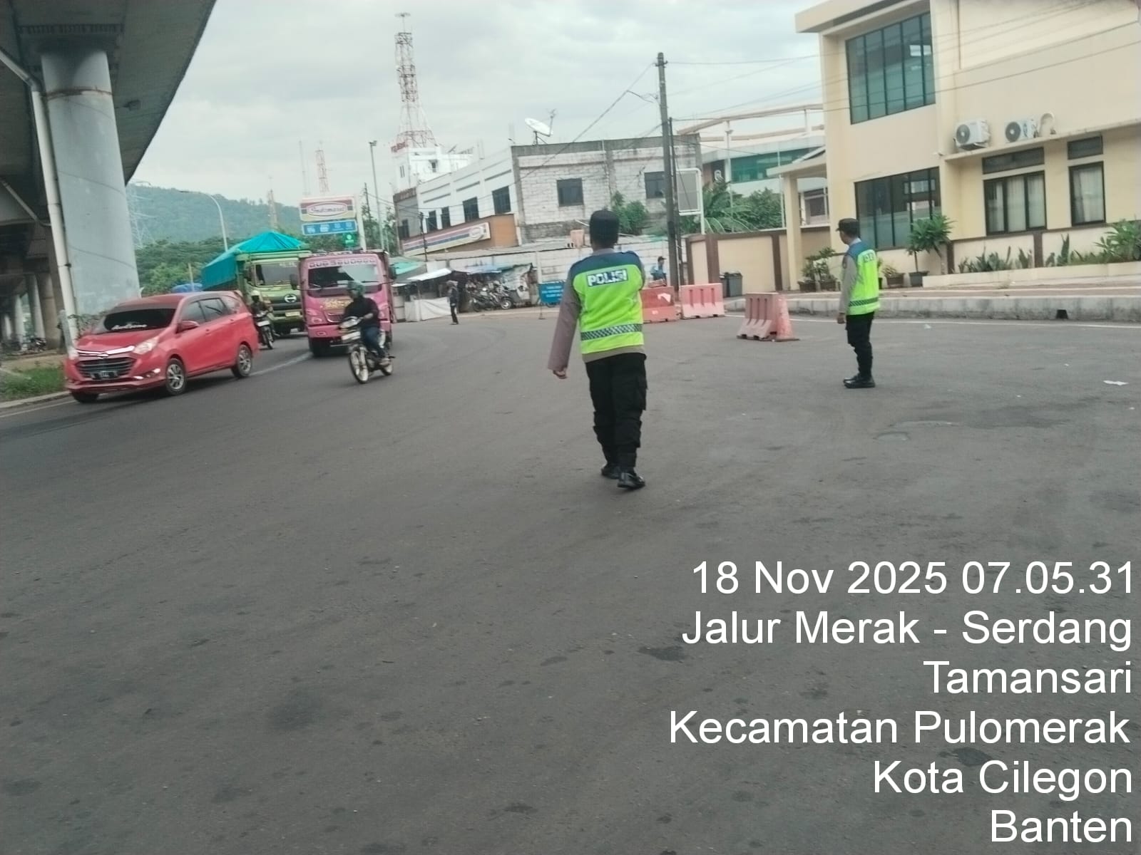 Cilegon - Dalam rangka peningkatan pelayanan prima kepada masyarakat, Kskp Merak Polres Cilegon Polda Banten melaksanakan pengaturan antrian R4 yang akan masuk ke Kapal Ferry di Pelabuhan Merak, Selasa (18/11/2025).