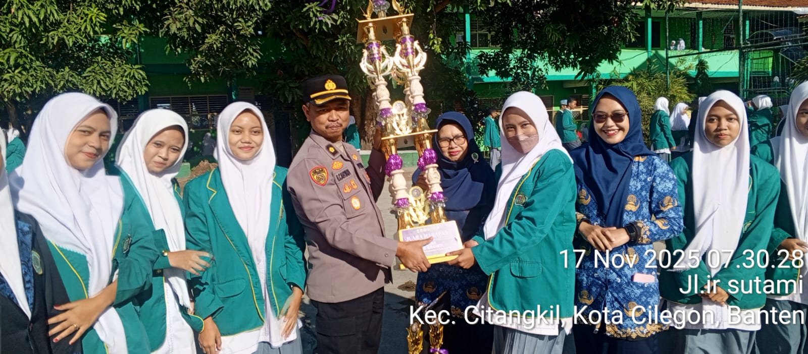 Cilegon – Bhabinkamtibmas Polsek Ciwandan Dampingi Kabag SDM Polres Cilegon Polda Banten KOMPOL Entang Cahyadi Pimpin Upacara Dan Menyambangi MAN 1 Kota Cilegon Dikelurahan Lebak Denok Kecamatan Citangkil, Menyampaikan Pesan-pesan Kamtibmas Dan Memberikan Imbauan, Selasa (18/11/2025).