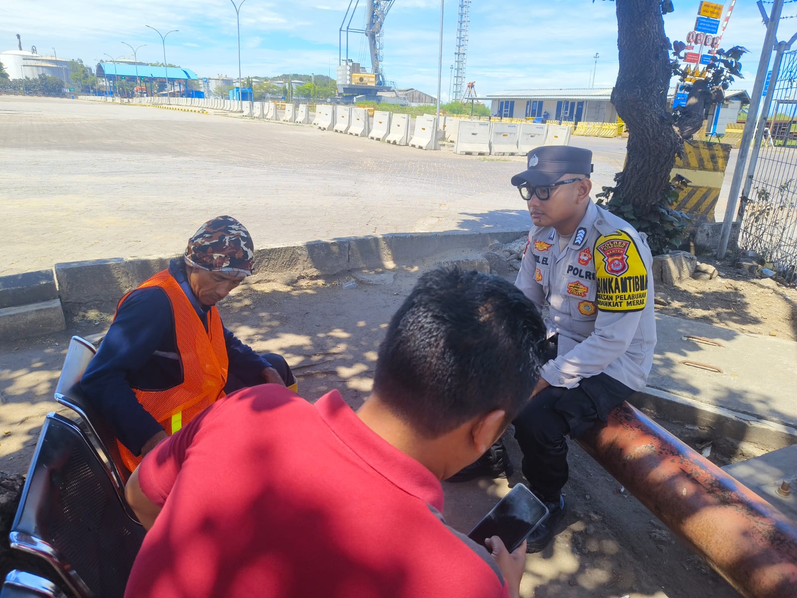Jalin Silaturahmi, Bhabinkamtibmas Pelabuhan Polsek KSKP Banten berbincang ke Buruh Pelabuhan