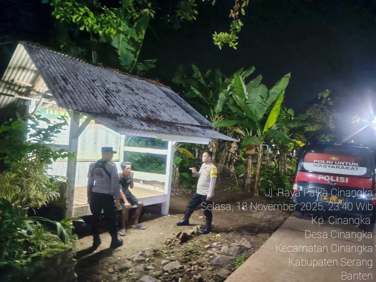 *Polres Cilegon* || Personel Bhabinkamtibmas Polsek Cinangka melaksanakan Program Komandan Wish Kapolda Banten RONDA SATKAMLING menyampaikan komunikasi dengan Petugas Siskamling agar berperan aktif dalam menciptakan Harkamtibmas yang aman dan Kondusif, Rabu (19/11/2025).