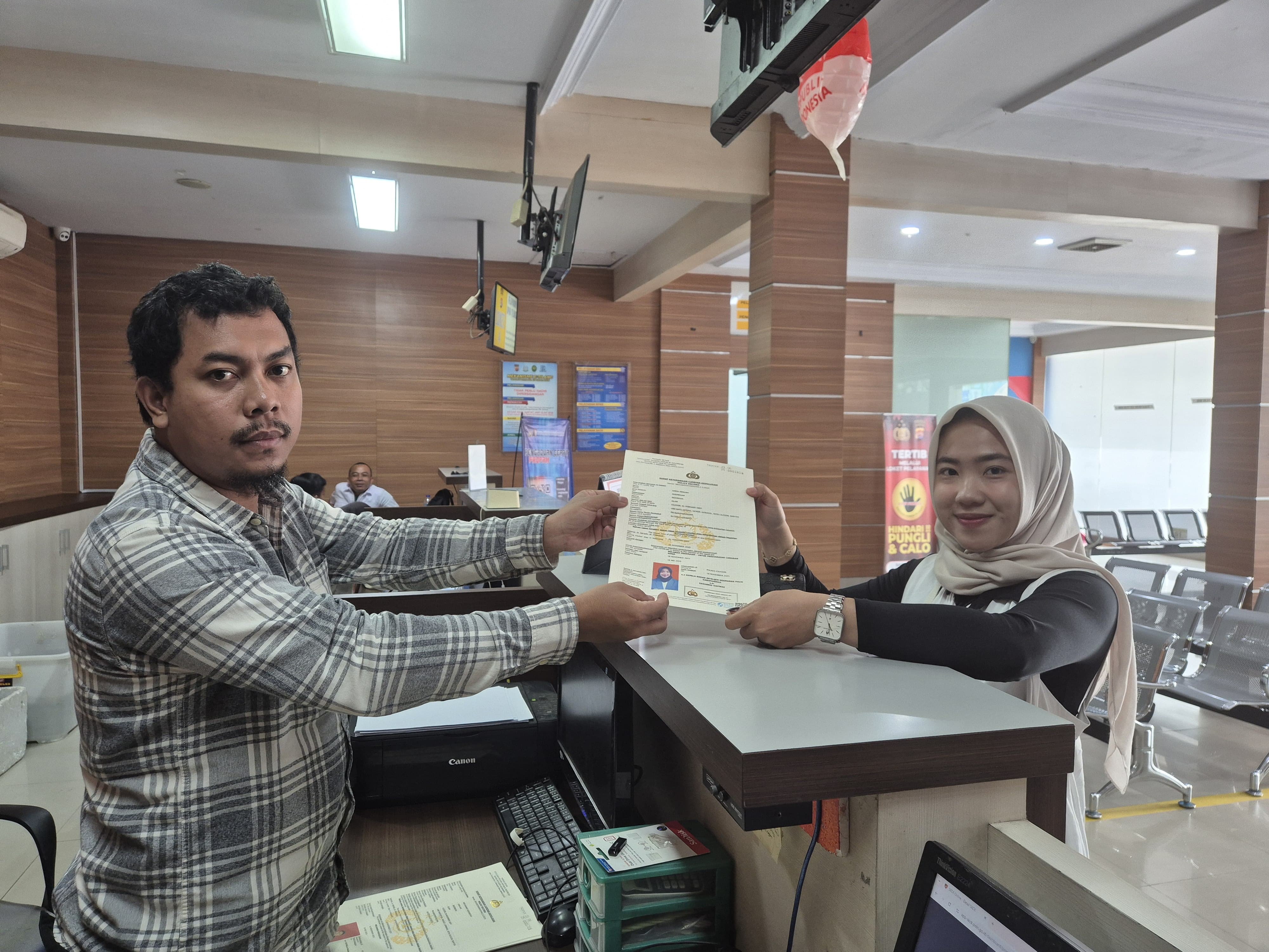 CILEGON - Testimoni penerbitan Surat Keterangan Catatan Kepolisian (SKCK) berbasis online. Sistem itu mulai diberlakukan awal November 2025, seluruh proses pendaftaran SKCK di wilayah hukum Polres Cilegon wajib dilakukan melalui Aplikasi Super App Polri versi terbaru (SKCK Full Online).