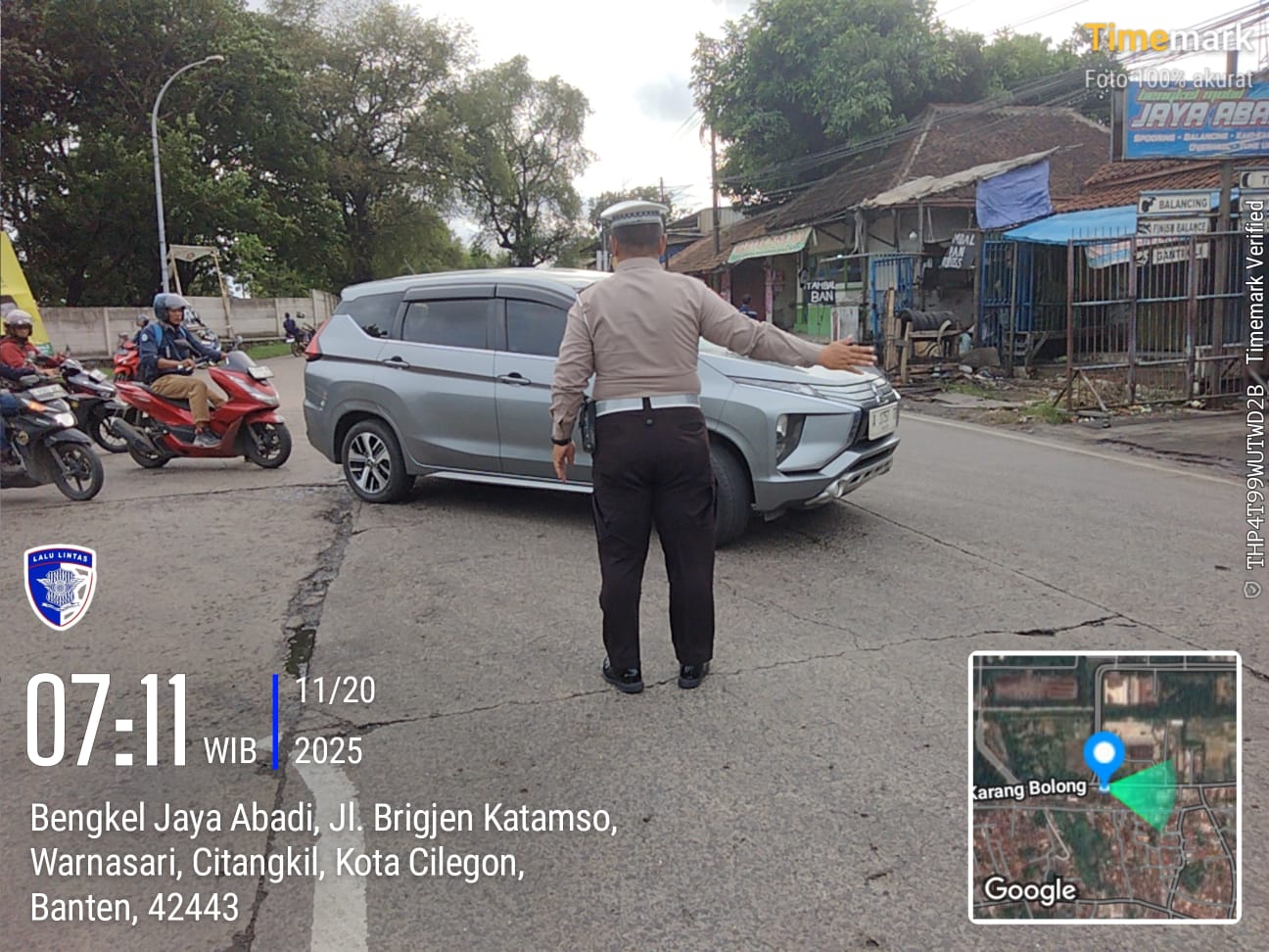 Cilegon - Dalam Mewujudkan Aksi Nyata Pelayanan Kepada Masyarakat,Personil Polsek Ciwandan Polres Cilegon Polda Banten Laksanakan Strong Poin Pengaturan Lalu-lintas, Kamis (20/11/2025).
