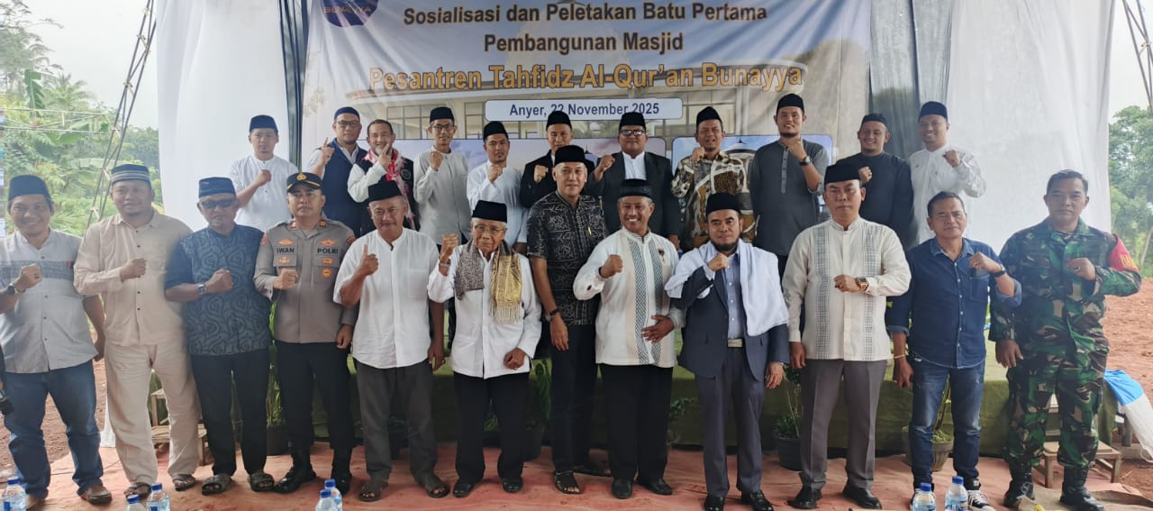 Polsek Anyar Menghadiri Acara Sosialisasi dan Peletakan Batu Pertama Pembangunan Masjid Pasantren Tahfidz Al-Qur'an