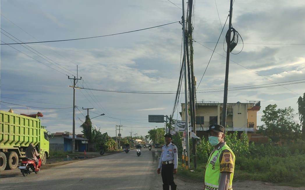 Bantu Lancarkan Lalin Di Jalan Raya PT RKU Bojonegara,Personel Polsek Bojonegara dan Dishub Laksanakan Gatur lalu lintas