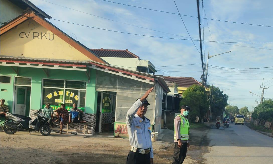Personel Polsek Bojonegara dan Dishub Laksanakan Gatur Lalin sore hari Di Jalan Raya PT RKU Bojonegara