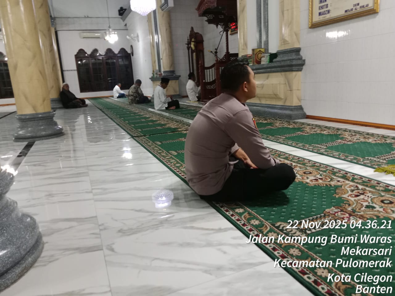 Cilegon – Personil Kskp Merak Polres Cilegon Polda Banten menggelar kegiatan Pembinaan Rohani dengan shalat subuh keliling di Masjid Yang ada Di Daerah hukum Polsek Kp Merak Polres Cilegon Polda Banten, Sabtu (22/11/2025).