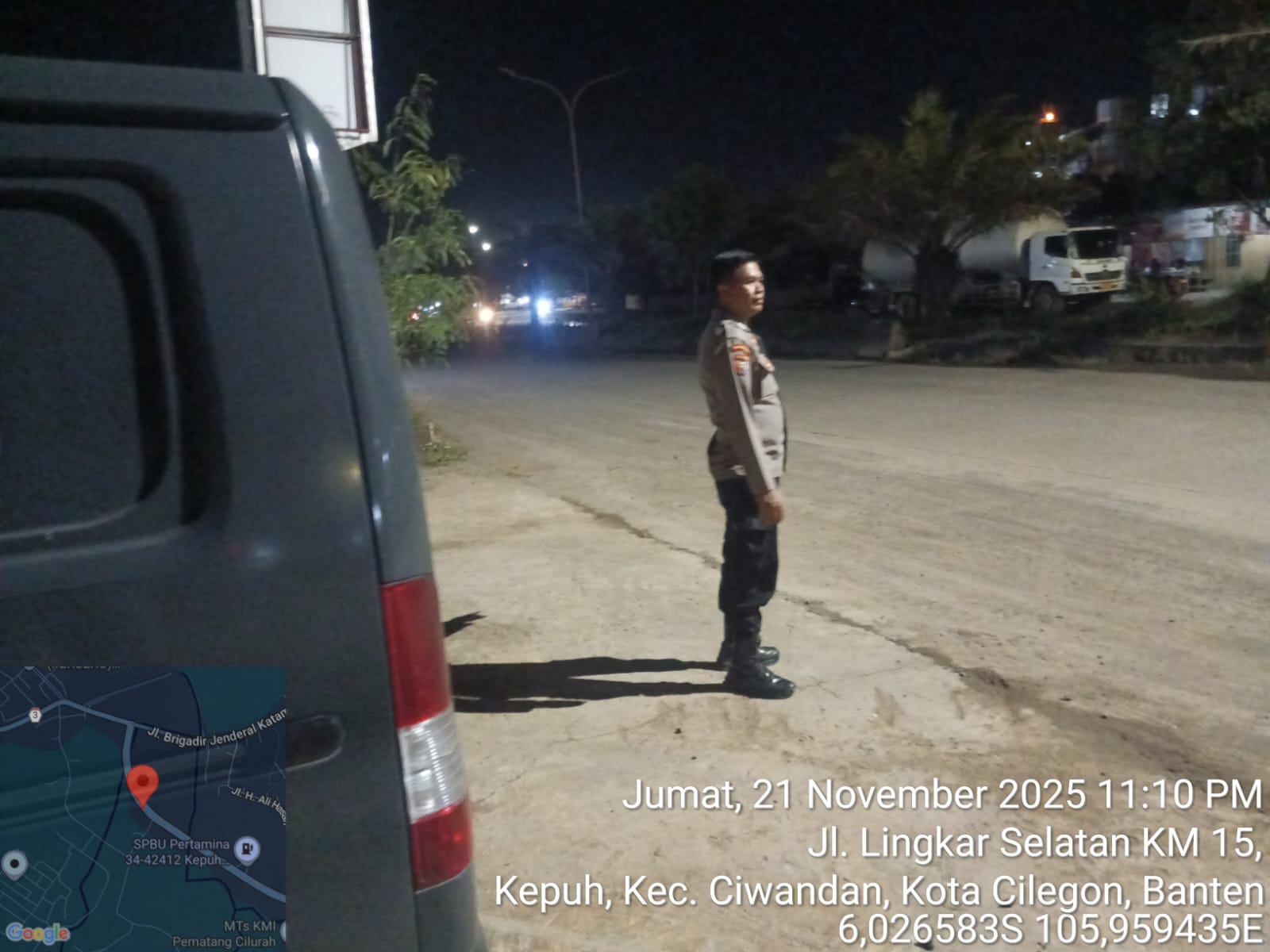 *Cilegon* - Personil Polsek Ciwandan Polres Cilegon Polda Banten Selalu Melaksanaan Kegiatan KRYD (Kegiatan Rutin Yang Ditingkatkan) Patroli Rutin malam hari di daerah hukum Polsek Ciwandan Guna Persempit Ruang Pelaku Tindak Kejahatan, Sabtu (22/11/2025).
