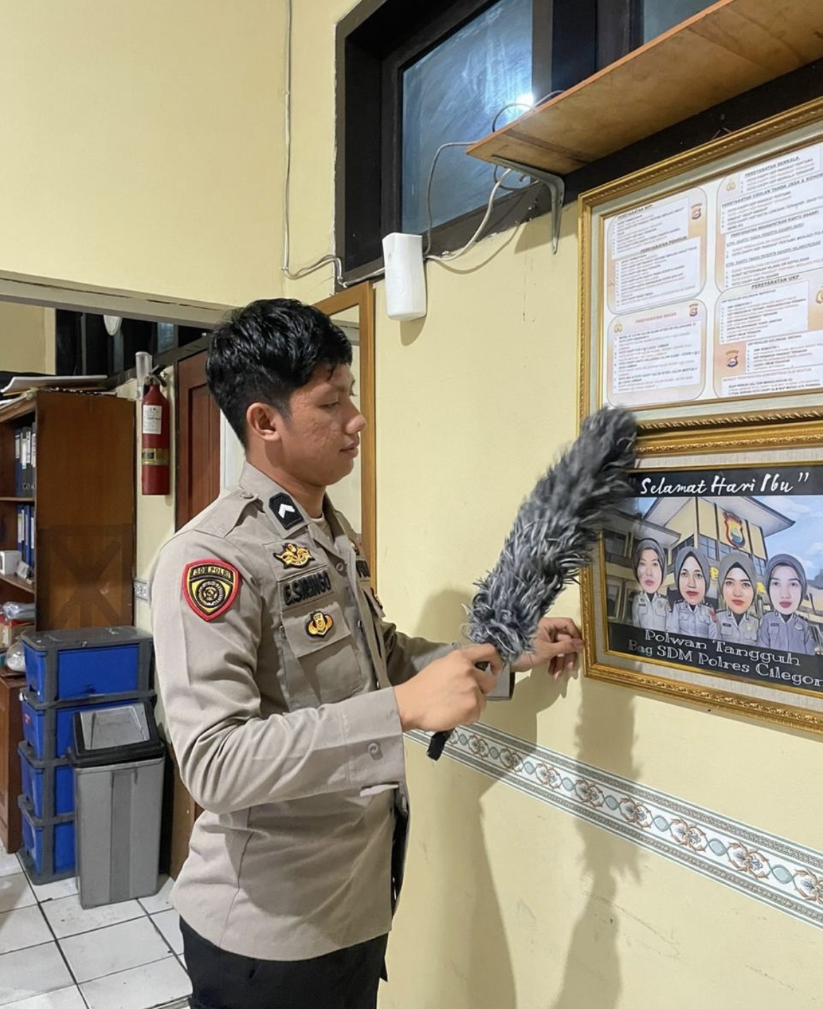 Anggota Bag SDM Polres Cilegon, Aktif dalam rutinitas membeersihkan ruangan kerja setiap hari
