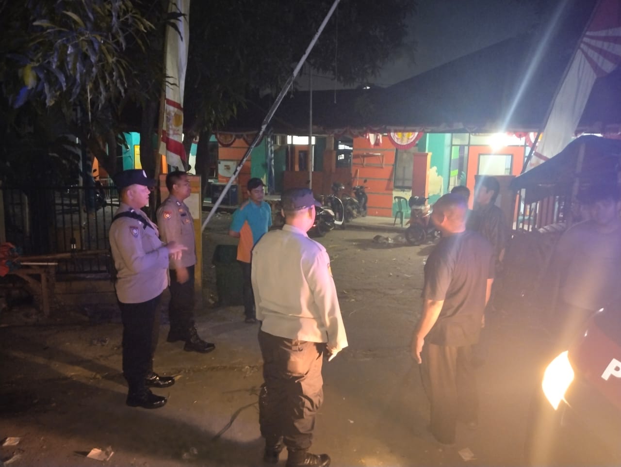Personel Polsek Cilegon sambangi ronda malam sampaikan pesan kamtibmas.