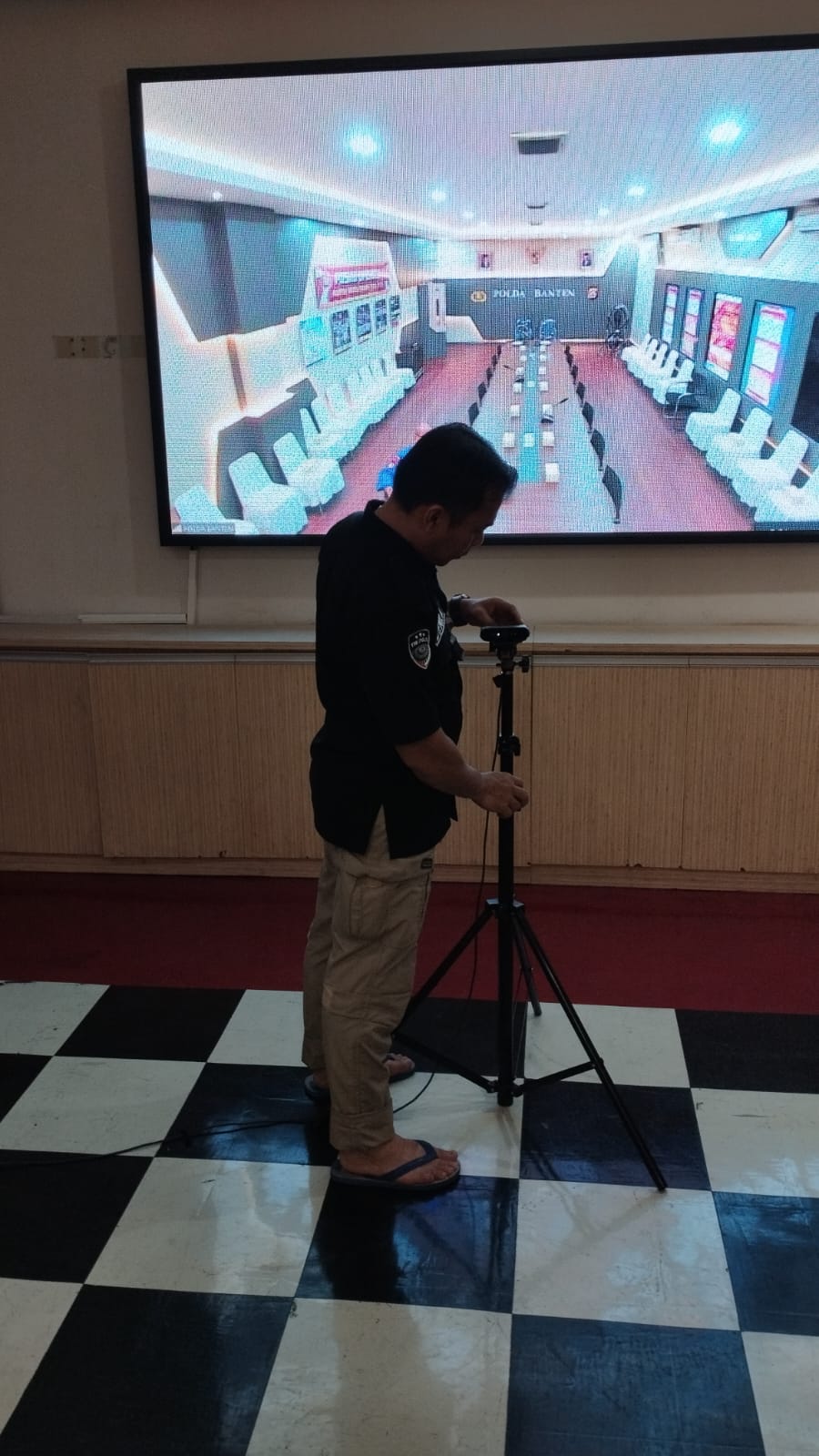 Anggota Tik Polres Cilegon Menyiapkan Sarana dan Prasarana Untuk Kegiatan Zoom meeting Dalam pelaksanaan kegiatan zoom meeting tersebut anggota TIK Polres Cilegon yang bertanggung jawab untuk menyiapkan peralatan zoom. Selain itu agar di tidak ada gangguan jaringan sebelum pelaksanaan anggota TIK melakukan pemeriksaan terhadap sarana dan prasarana tersebut . Satu jam sebelum kegiatan zoom meeting itu dimulai. Kapolres Cilegon AKBP. DR. MARTUA RAJA TARIPAR LAUT SILITONGA. melalui Kasi TIK IPTU Lukman menyampaikan bahwa “untuk menunjang kelancaran penyampaian informasi anggota TIk Polres Cilegon selalu memeriksa sarana dan prasarana tersebut, sebelum maupun pada saat pelaksanaan akan selalu di monitor”