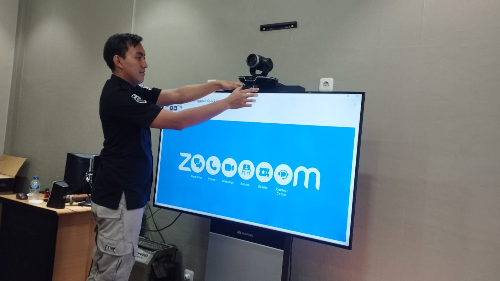 Anggota Tik Polres Cilegon Menyiapkan Sarana dan Prasarana Untuk Kegiatan Zoom meeting Dalam pelaksanaan kegiatan zoom meeting tersebut anggota TIK Polres Cilegon yang bertanggung jawab untuk menyiapkan peralatan zoom. Selain itu agar di tidak ada gangguan jaringan sebelum pelaksanaan anggota TIK melakukan pemeriksaan terhadap sarana dan prasarana tersebut . Satu jam sebelum kegiatan zoom meeting itu dimulai. Kapolres Cilegon AKBP. DR. MARTUA RAJA TARIPAR LAUT SILITONGA. melalui Kasi TIK IPTU Lukman menyampaikan bahwa “untuk menunjang kelancaran penyampaian informasi anggota TIk Polres Cilegon selalu memeriksa sarana dan prasarana tersebut, sebelum maupun pada saat pelaksanaan akan selalu di monitor”