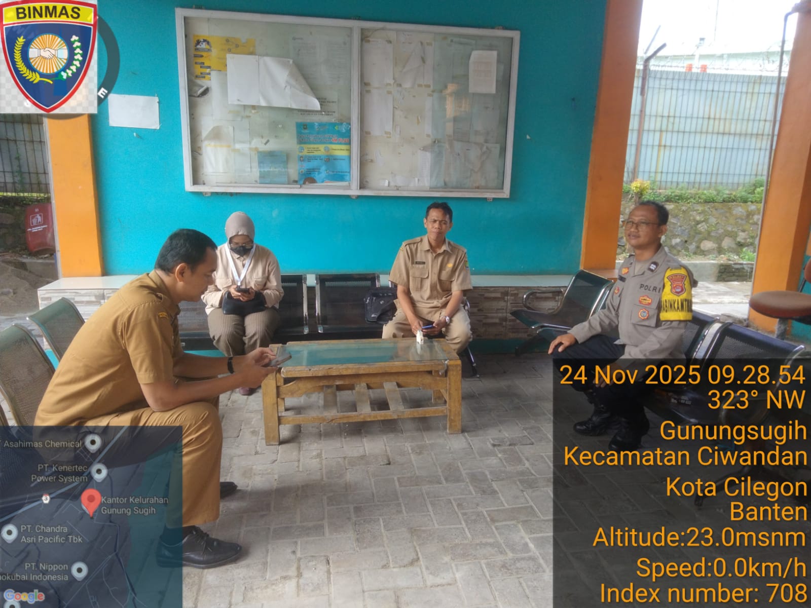 Cilegon - Dalam upaya memberikan rasa aman kepada masyarakat Bhabinkamtibmas Polsek Ciwandan Polres Cilegon Polda Banten melakukan upaya dalam mencegah gangguan kamtibmas,seperti melaksanakan giat sambang di kantor-kantor kelurahan bertemu langsung dengan perangkat kelurahan, Selasa (25/11/2025).