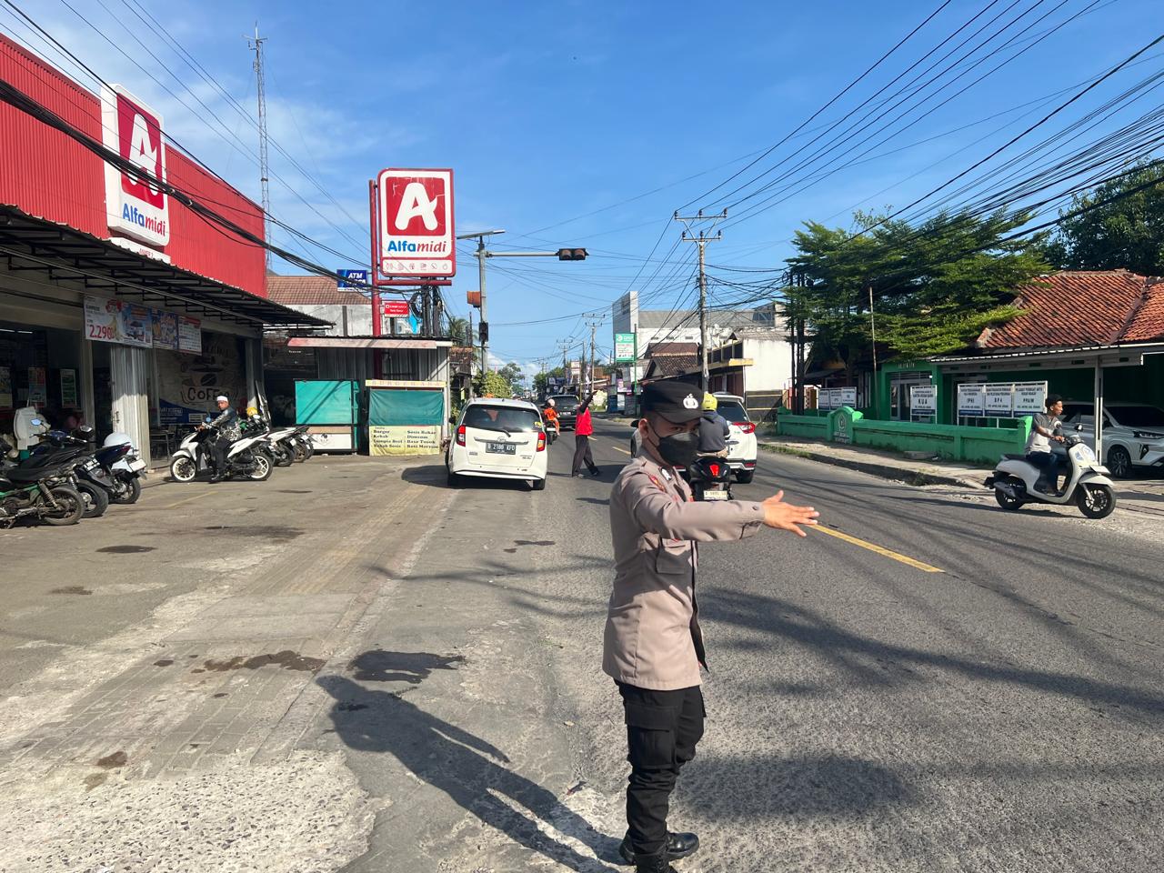 guna hindari kemacetan di akhir pekan personil polres cilegon laksanakan giat strong point arah tempat wisata