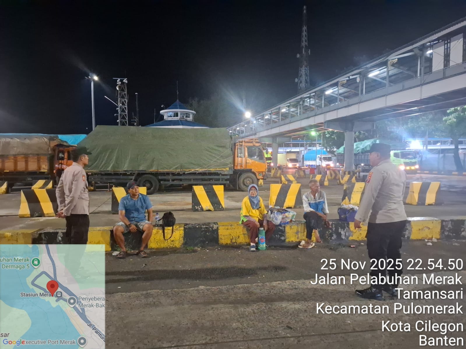 Cilegon - Personil Polsek Kskp Merak Polres Cilegon melaksanakan patroli di kawasan pelabuhan merak memberikan rasa aman dan damai, Rabu (26/11/2025)