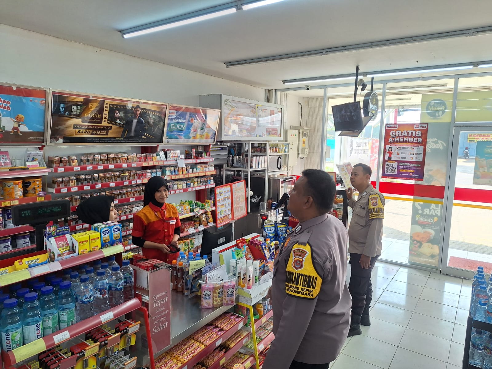 Sambangi Minimarket Alfamart, Bhabinkamtibmas Sampaikan Imbauan Kamtibmas
