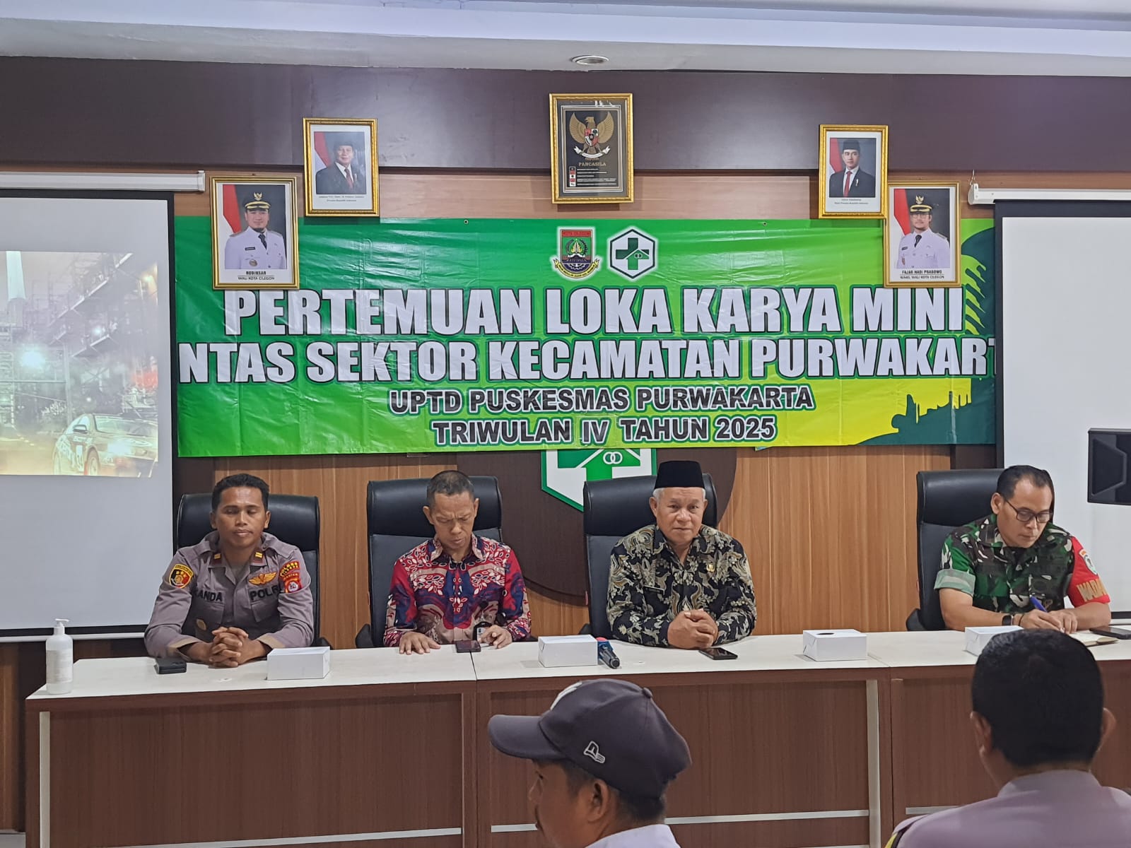 Kapolsek Purwakarta, IPTU Sukanda, menghadiri kegiatan pertemuan Loka Karya Mini Lintas Sektoral yang diselenggarakan di Aula UPTD Puskesmas Purwakarta