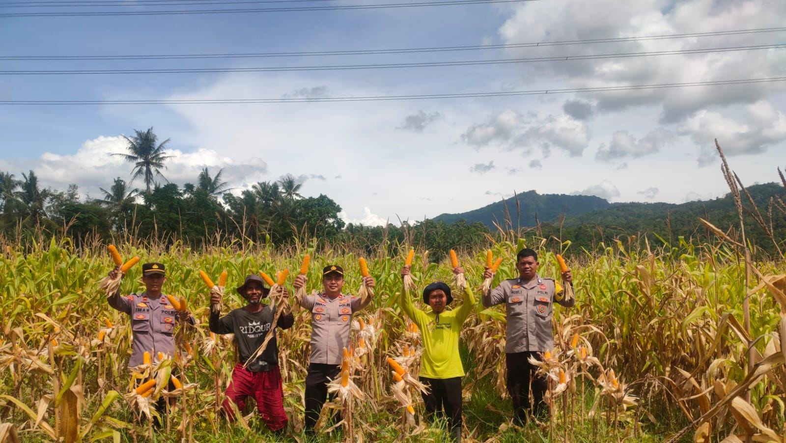 Polsek Anyar Dengan Poktan Melaksanakan Panen Jagung Bersama