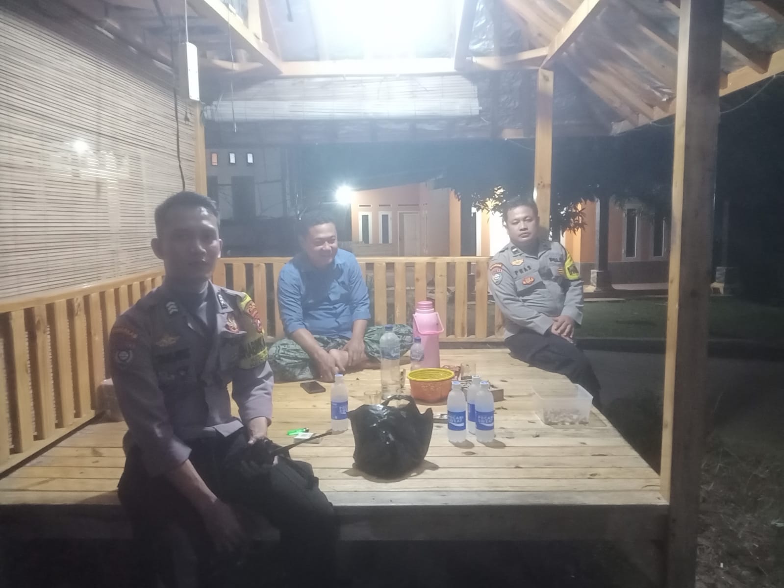 Cegah gangguan kamtibmas, bhabinkamtibmas polsek cibeber kunjungi pos ronda warga
