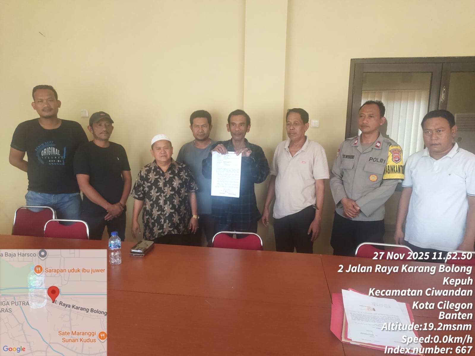 Dan untuk menguatkan kesepakatan tersebut Kedua belah pihak membuat surat kesepakatan bersama dihadapan Bhabinkamtibmas Kelurahan Gunung Sugih Polsek Ciwandan Polres Cilegon Polda Banten, terangnya