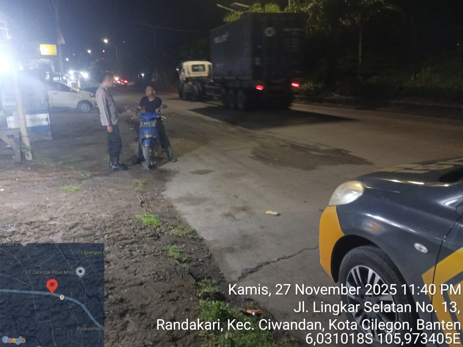 Cilegon - Personil Polsek Ciwandan Polres Cilegon Polda Banten melakukan patroli malam yang bertujuan untuk mengantisipasi adanya aktivitas balap liar dan tawuran kelompok geng motor di daerah hukum Polsek Ciwandan Polres Cilegon Polda Banten, Jum'at (28/11/2025).