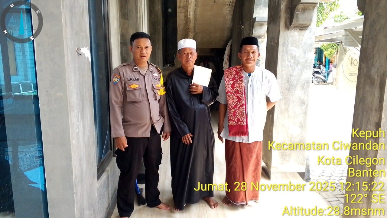 Cilegon - Bhabinkamtibmas Polsek Ciwandan Polres Cilegon Polda Banten Selesai melaksanakan Sholat secara berjama’ah dan Sampaikan Himbauan-himbauan Kamtibmas Kepada Masyarakat Jama'ah Yang ada Dimasjid, Jum'at (28/11/2025).