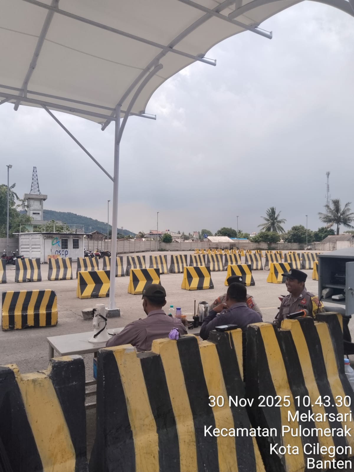 Cilegon - Personel Polsek Kskp Merak Polres Cilegon Polda Banten melaksanakan sambang dan patroli kawasan pelabuhan merak dalam rangka menjaga Harkamtibmas di Kawasan Pelabuhan Merak, Senin (01/12/2025).
