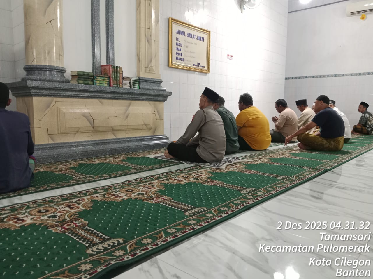 “Dalam kegiatan tersebut, Personil Polsek Kp Polres Cilegon Polda Banten turut berbaur dengan jemaah masjid dalam melaksanakan shalat subuh berjamaah. Setelah itu, dilakukan dialog interaktif antara petugas kepolisian dan masyarakat untuk mendengarkan aspirasi serta memperoleh masukan terkait dengan situasi keamanan dan ketertiban di lingkungan sekitar,” tambah Kapolsek.
