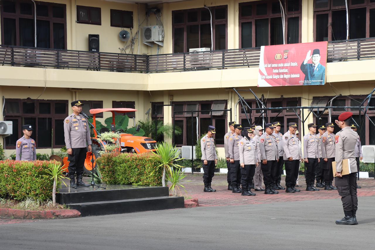 Apel tersebut digelar atas perintah Kapolres Cilegon AKBP Dr. Martua Raja Taripar Laut Silitonga, S.H., S.I.K., M.Si., dan dipimpin oleh Kabag SDM Polres Cilegon, Kompol Entang Cahyadi, S.H.