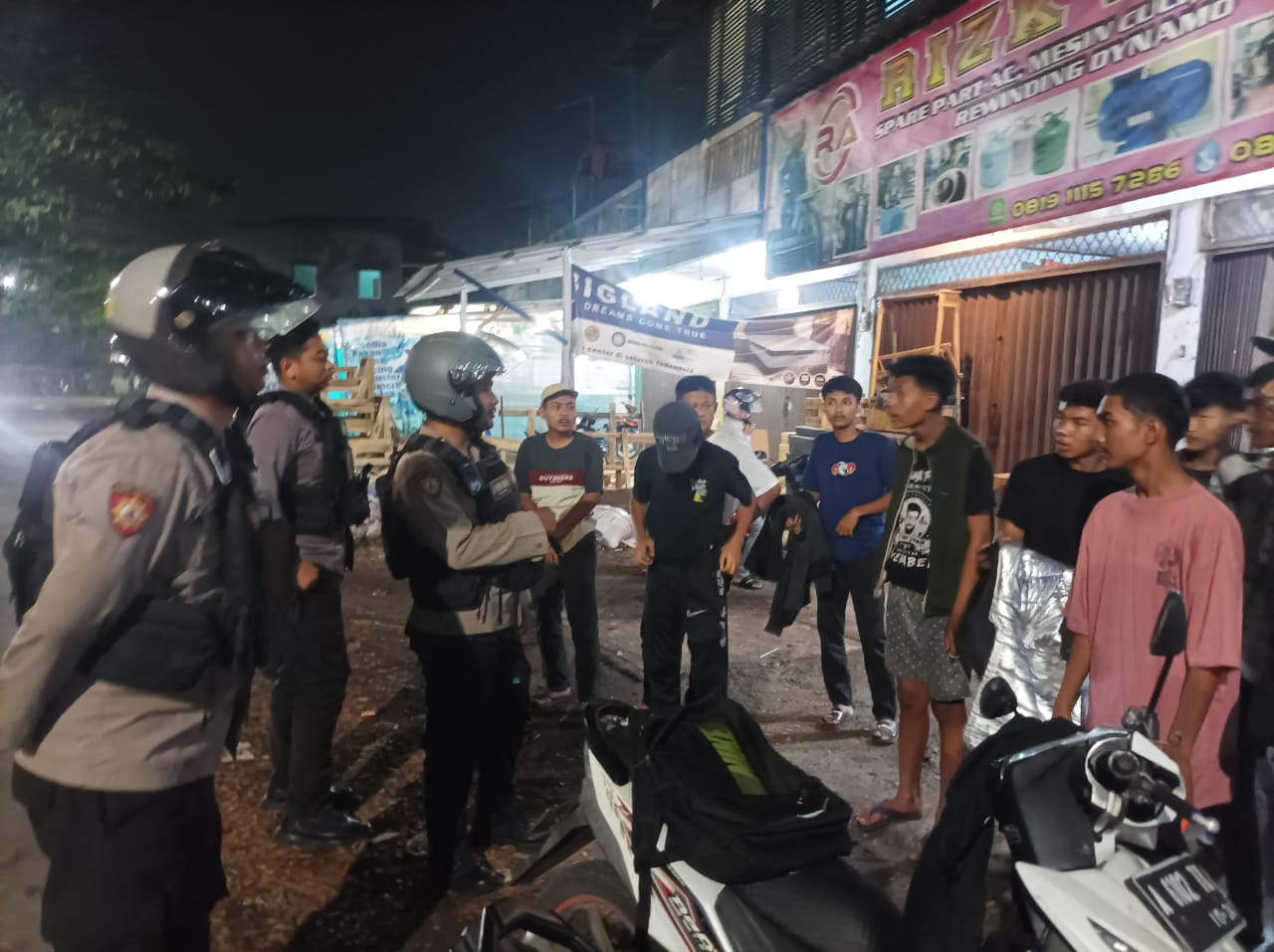 Kanit Turjawali Satsamapta Ipda Ferri dan Anggota Patroli Maung Presisi Sat Samapta Polres Cilegon menghimbau kepada masyarakat kota Cilegon untuk selalu waspada dan meningkatkan keamanan di lingkungan sekitarnya guna mengantisipasi kejadian tindak pidana khususnya 3C agar terciptanya situasi yang aman dan kondusif. (Satsamapta)