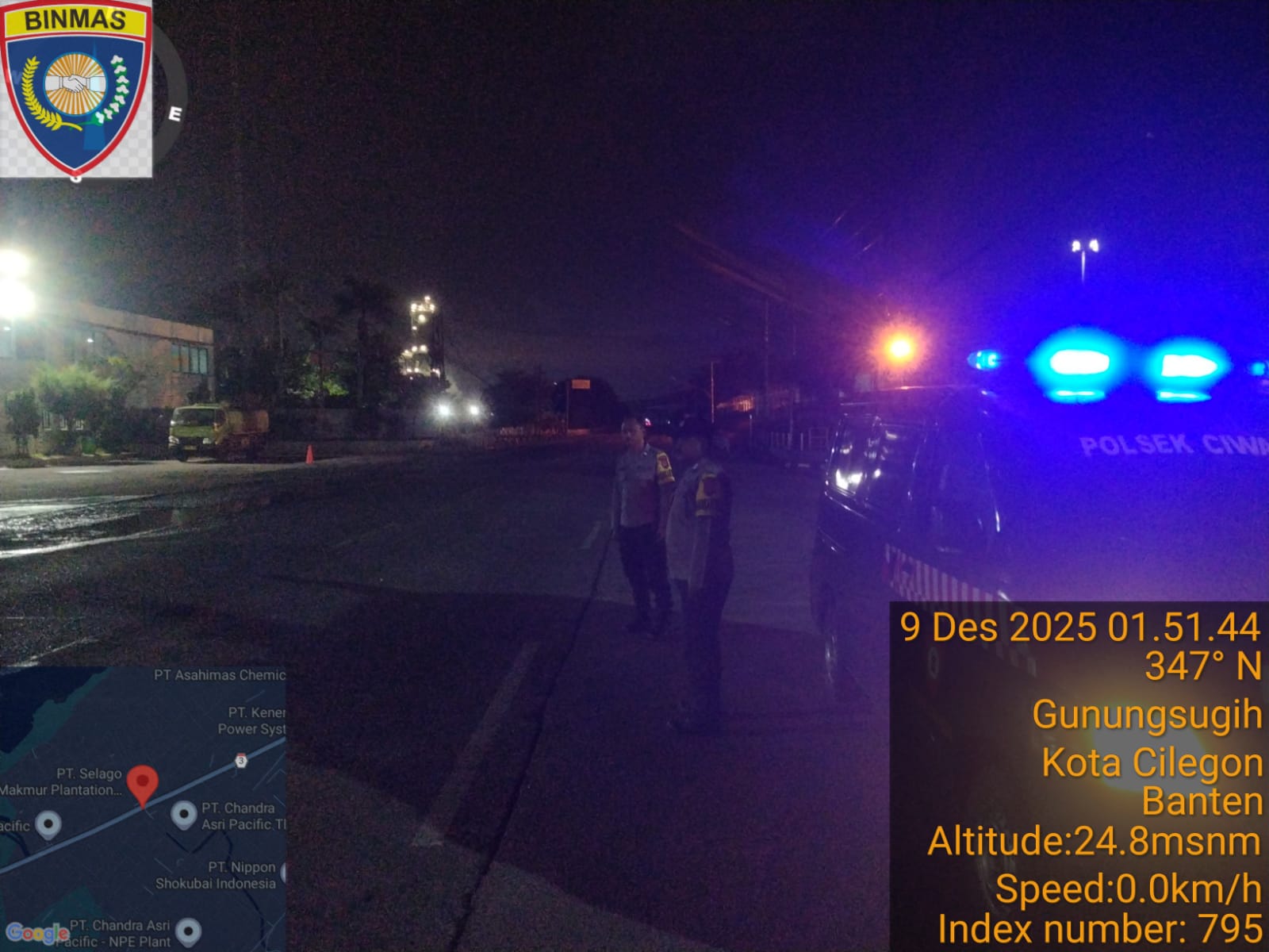 *Cilegon * - Polres Cilegon melalui Polsek Ciwandan melaksanakan kegiatan Blue Light Patrol. Kegiatan ini bertujuan untuk mengantisipasi gangguan kamtibmas, premanisme, C3 (curat, curas, dan curanmor), balap liar, gang motor, dan perkelahian remaja didaerah hukum Polsek Ciwandan, Selasa (09/12/2025).