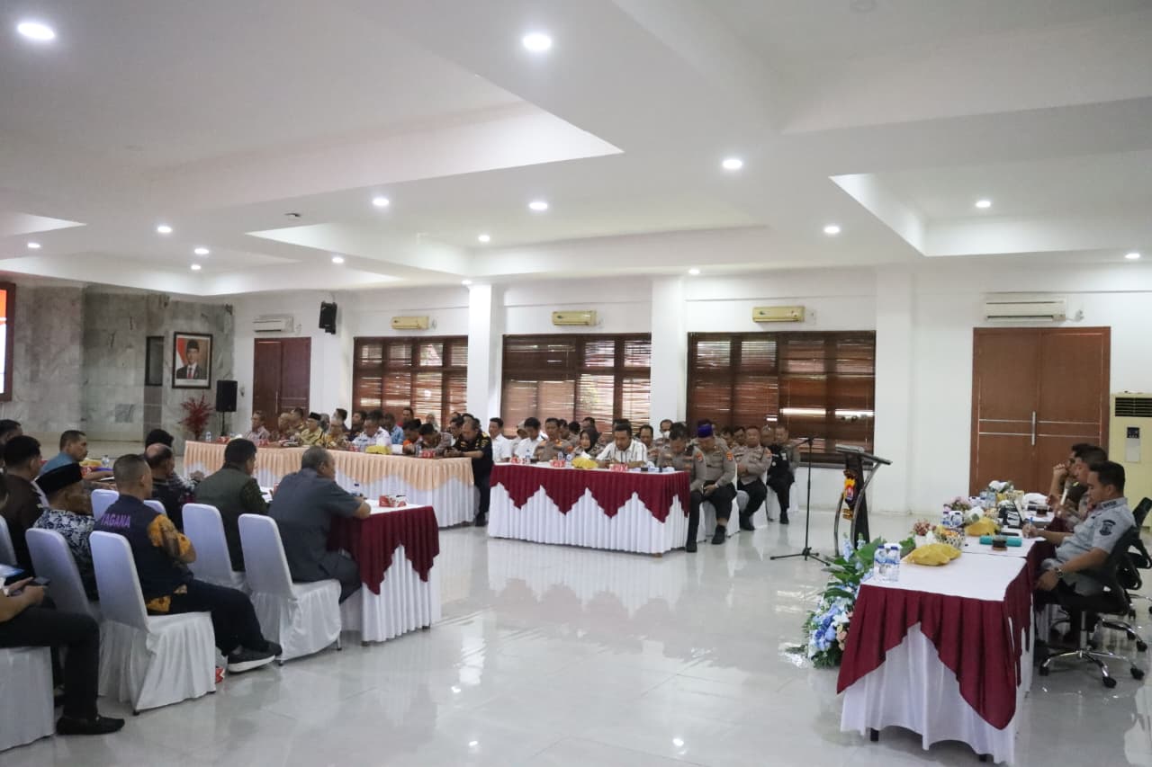 Cilegon – Polres Cilegon Polda Banten menggelar Rapat Koordinasi Lintas Sektoral dalam rangka kesiapan pelaksanaan Operasi Lilin Maung 2025 untuk pengamanan perayaan Natal 2025 dan Tahun Baru 2026. Kegiatan berlangsung di Aula Wicaksana Laghawa Polres Cilegon, dipimpin langsung oleh Kapolres Cilegon AKBP Dr. Martua Raja Taripar Laut Silitonga, S.H., S.I.K., M.Si. Kamis, 11 Desember 2025.